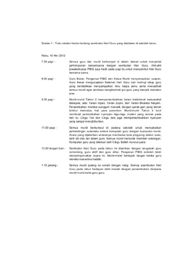 Catatan Sambutan Hari Guru from imgv2-2-f.scribdassets.com Berikut contoh karangan ucapan sempena hari guru. Sebagai ketua murid kamu diminta menyampaikan ucapan sempena sambutan hari guru di sekolah kamu. Akan ku ingat selalu dirimu sebagai guru terbaik dalam hidupku. Tentu saja anda akan menyebutkan ayah, ibu, kakek, nenek, bahkan guru di sekolah. Laporan hari kokurikulum sekolah menengah kebangsaan seri murni. Biasanya, ucapan untuk guru diberikan pada momen khusus, seperti hari guru. Seorang guru pasti merasa bangga bilamana murid yang mereka didik menghargai profesi mereka. Kalau kamu mau yang lebih lucu tapi sedikit menyindir (ehe) bisa nih pakai lagu guru oemar bakri ciptakan iwan fals.